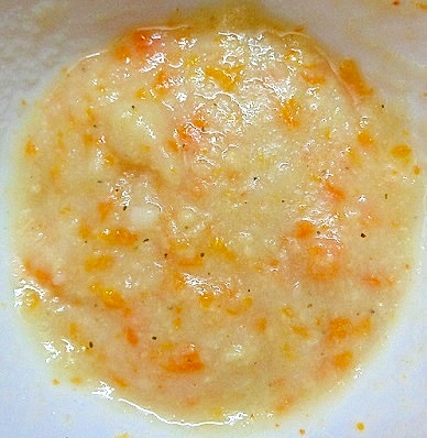 離乳食初期から中期へ移行期間 61日目 2回目 野菜スープパン粥 かんたん離乳食研究日記